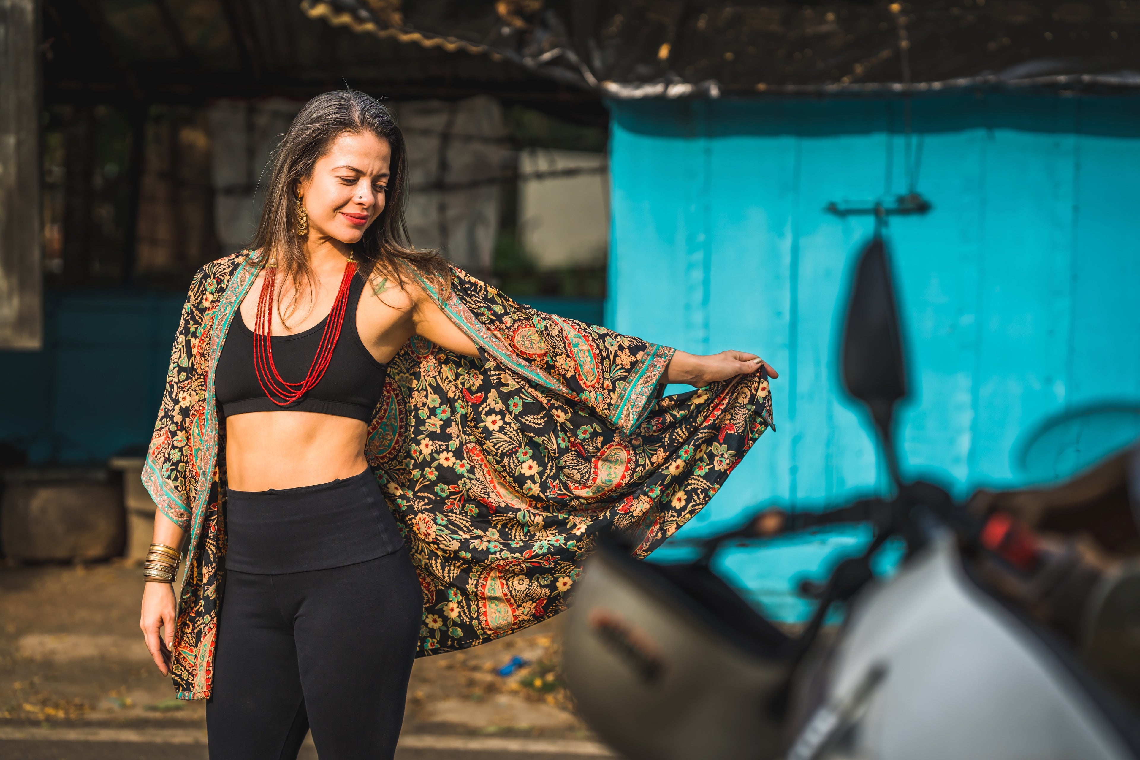 4. der Kimono und die Yoga Hose sind vom Muster super schön. Die andere Hose ist tief schwarz. Bei allen Artikeln gefällt das Design sehr gut und ist wie abgebildet!