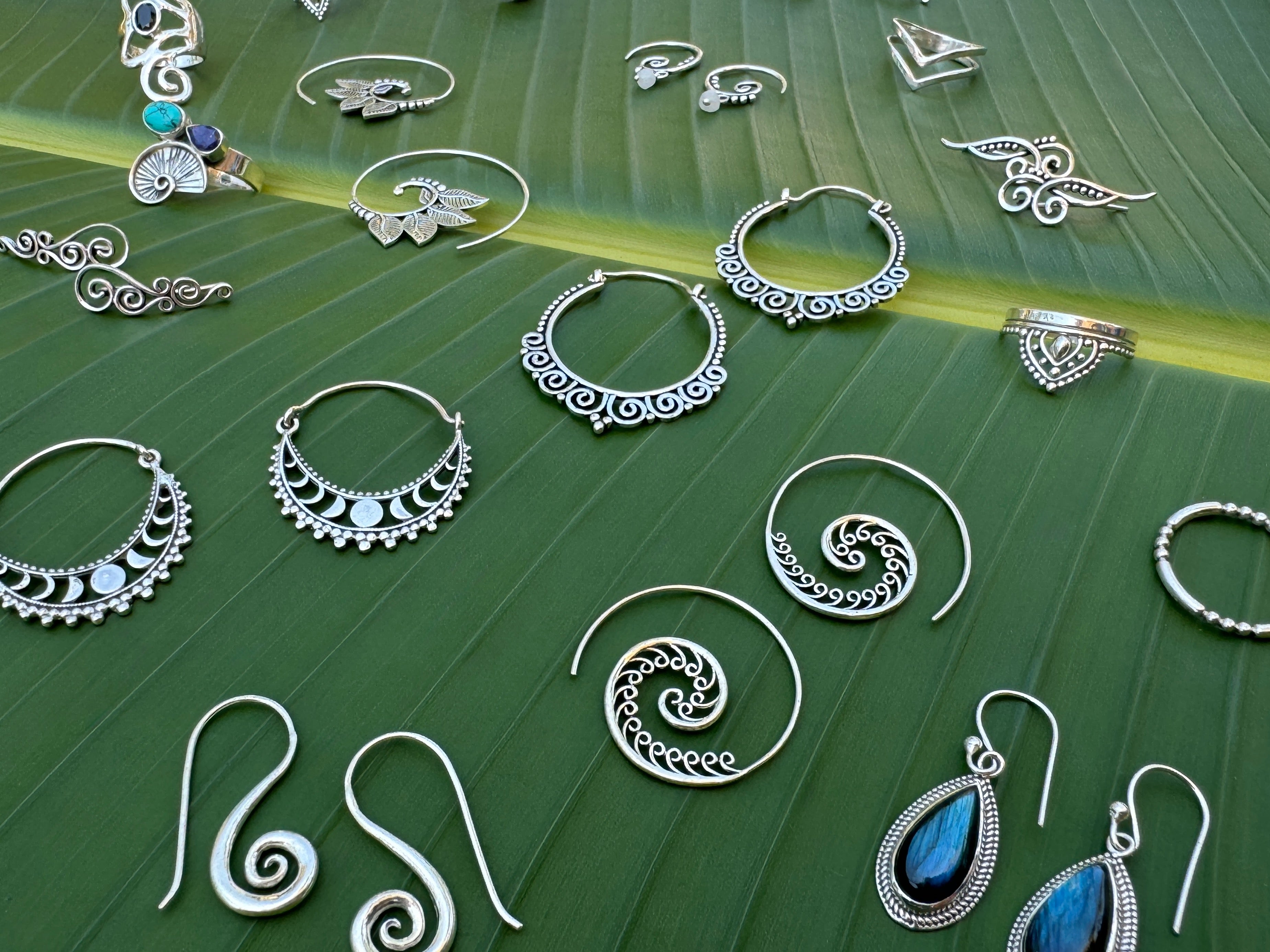 Earclimber Ohrringe mit Spiralen und Pünktchen aus Silber