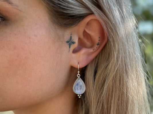 schlichte tropfenförmige Hängeohrringe mit Regenbogenmondstein