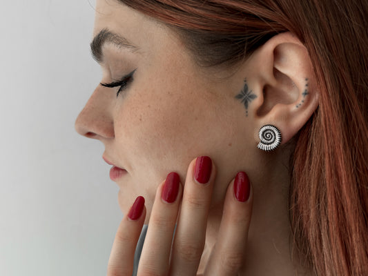 kleine gewölbte Ohrstecker Spirale aus Silber