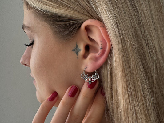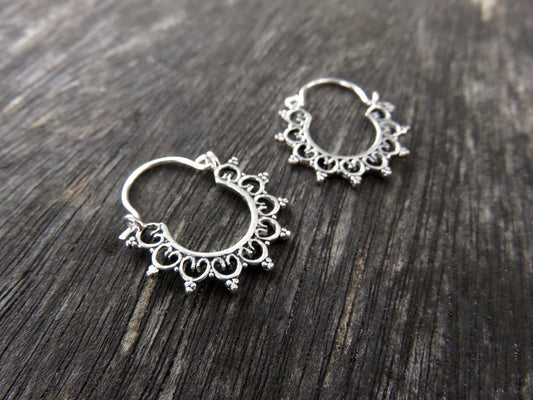 kleine filigrane Creolen mit Pünktchen aus Silber
