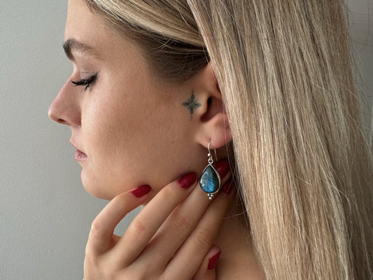 schlichte tropfenförmige Hängeohrringe mit Labradorit