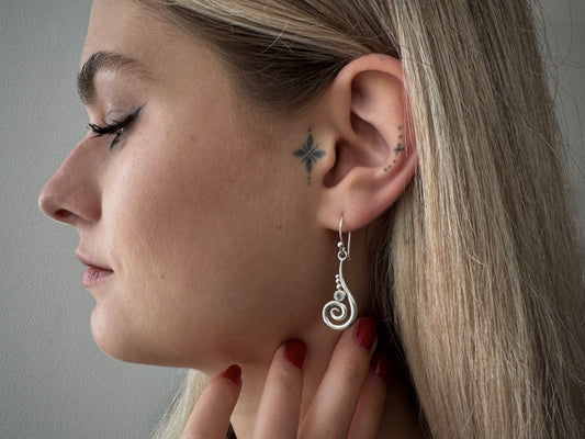 kleine Spiral Ohrringe mit Pünktchen und baumelndem Stein aus Silber