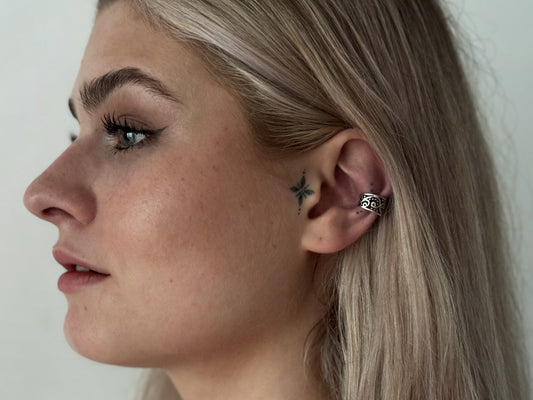 Ohrclip mit filigranem Muster aus Silber, Ohrmanschette