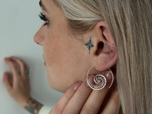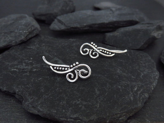 Earclimber Ohrringe mit Spiralen und Pünktchen aus Silber