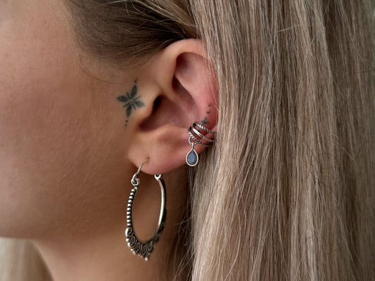 Ohrclip mit baumelndem Mondstein in Tropfenform, Silber 925