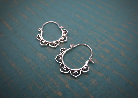 mini Creolen mit Blütenmuster aus Silber oder Silber- gold plattiert