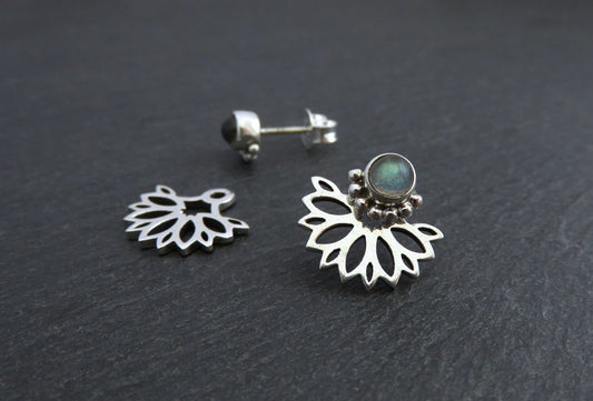 Front Back Ohrstecker aus Silber mit Labradorit Stein
