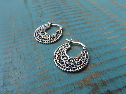 kleine Creolen mit filigranem Spiralmuster aus Silber