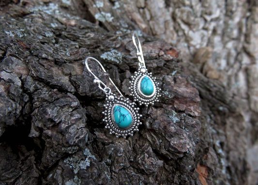 Earclimber Ohrringe mit türkisen Steinen aus Silber