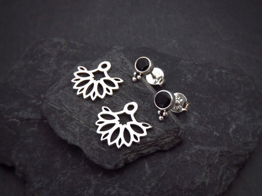 Front Back Ohrstecker mit schwarzem Onyx Stein aus Silber