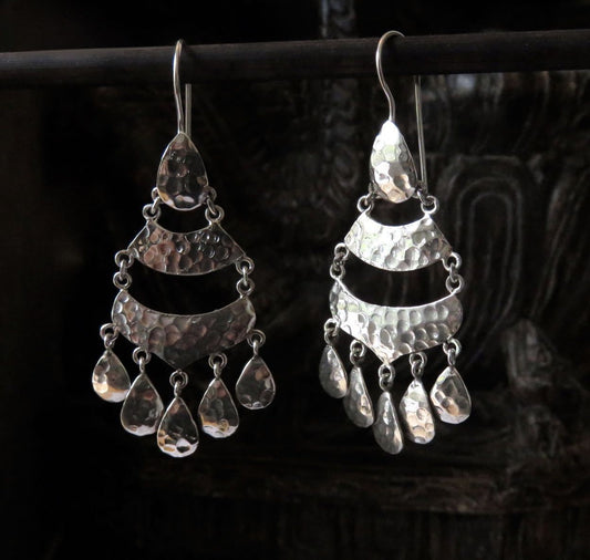 große Hängeohrringe mit Tropfen und Hammerschlag Optik aus Silber