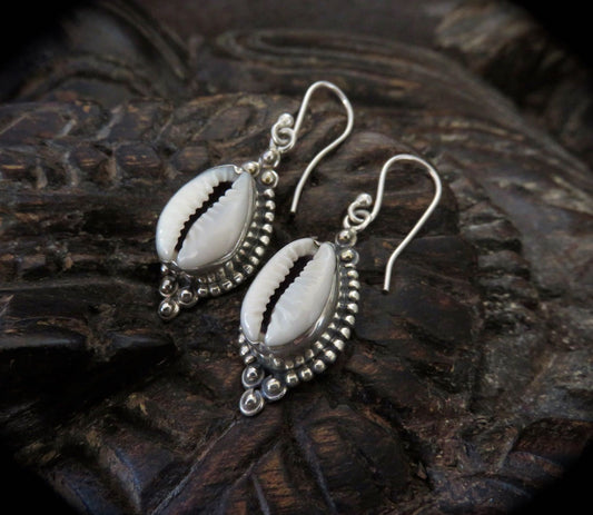 fächerförmige Ohrringe mit ovalem Stein aus Silber