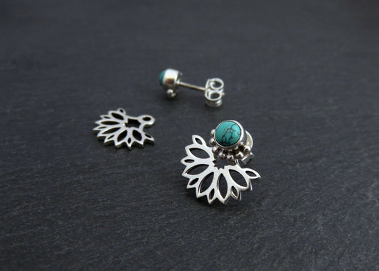 Front Back Ohrstecker aus Silber mit türkisem Stein