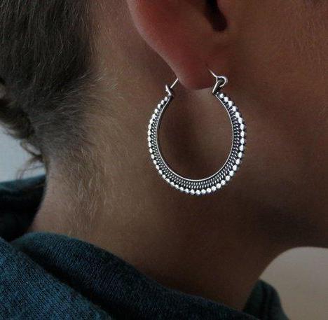 mittelgroße gemusterte Creolen aus Silber 25 mm