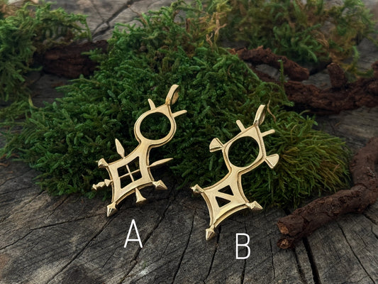 kleiner goldfarbener Messing Anhänger – Ethno Talisman – Tribal Symbol Schmuck – Boho Amulett