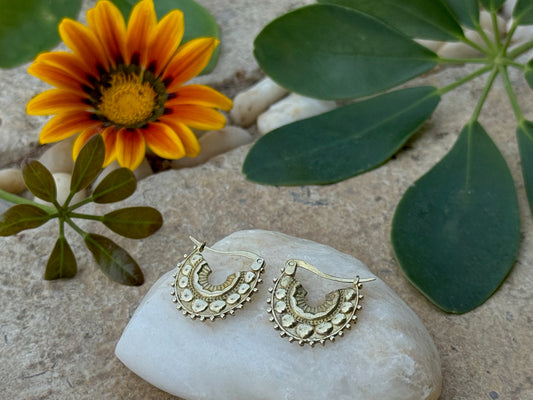 Lotus Ohrringe aus Messing, filigrane Creolen im Boho Stil