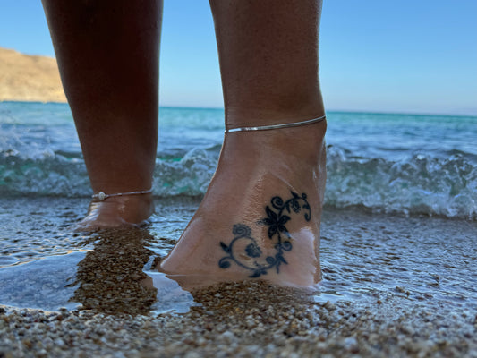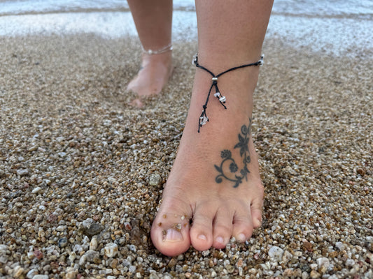 verstellbares Fusskettchen mit kleinen runden Silber Perlen