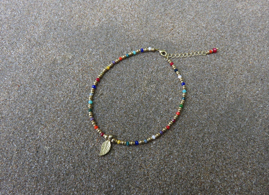 Fusskettchen mit kleinem Blatt aus Messing und farbigen Perlen