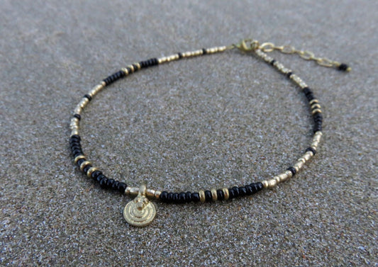 Fusskettchen aus farbigen Perlen und Messingelementen