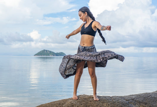 Batik Yoga Top mit dem Muster der Lebensblume in blau schwarz