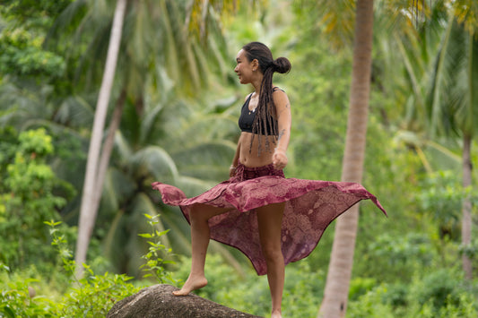 gemusterter Rock mit Fransen, Sommerkleid, Elfenkleid, Zipfelrock, Fransenrock in rot mit filigranem Muster