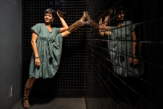 locker geschnittenes buntes Sommerkleid mit Ärmeln, grün weiß