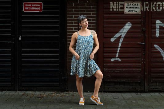 locker geschnittenes Sommerkleid mit Spaghetti Trägern und Taschen
