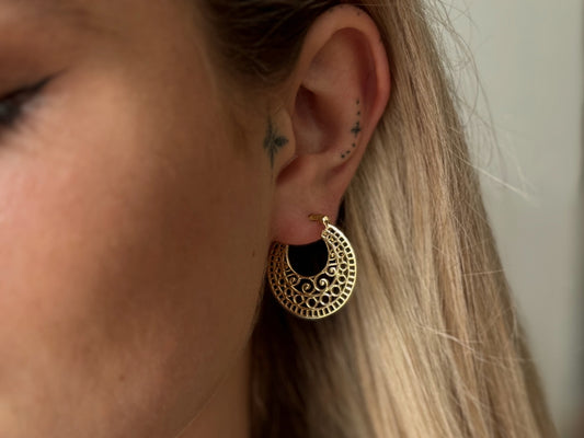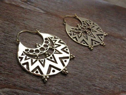 Creolen mit Mondzyklus und Pünktchen aus Messing