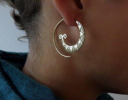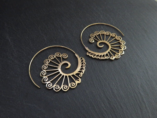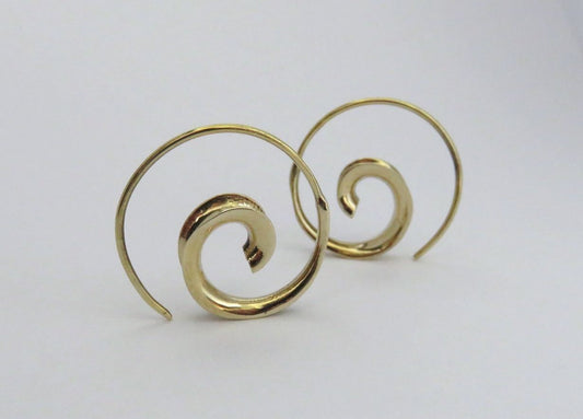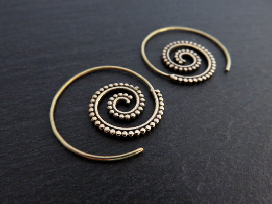 schlichte Spiral Creolen aus Messing, Boho Ohrringe Damen, Spiral Schmuck