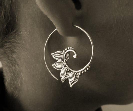 verspielte Spiral Ohrringe mit Blättern aus Messing