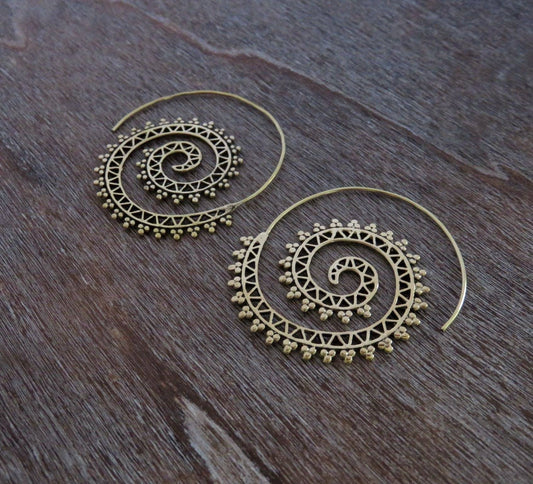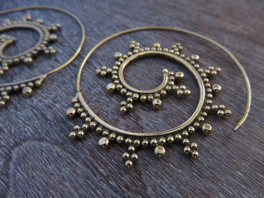 große Spiral Ohrringe mit Pünktchen aus Messing