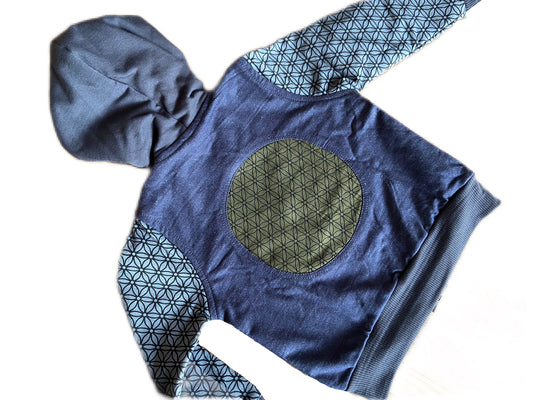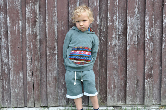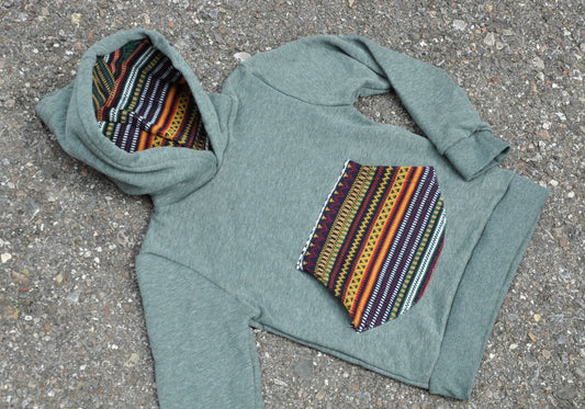 Kinder Pullover mit bunter Tasche und Kapuzenfutter grün