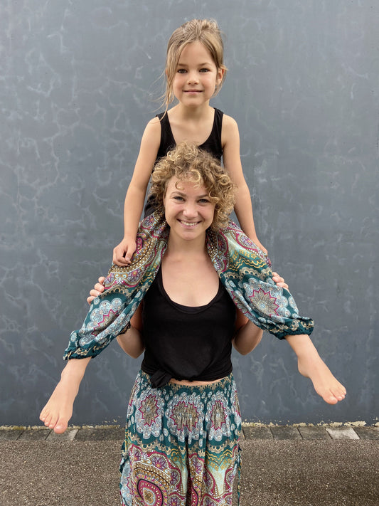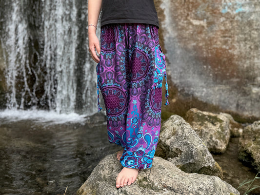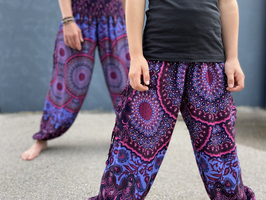 Pluderhose mit Mandala Blumen Muster für Kinder in rot türkis