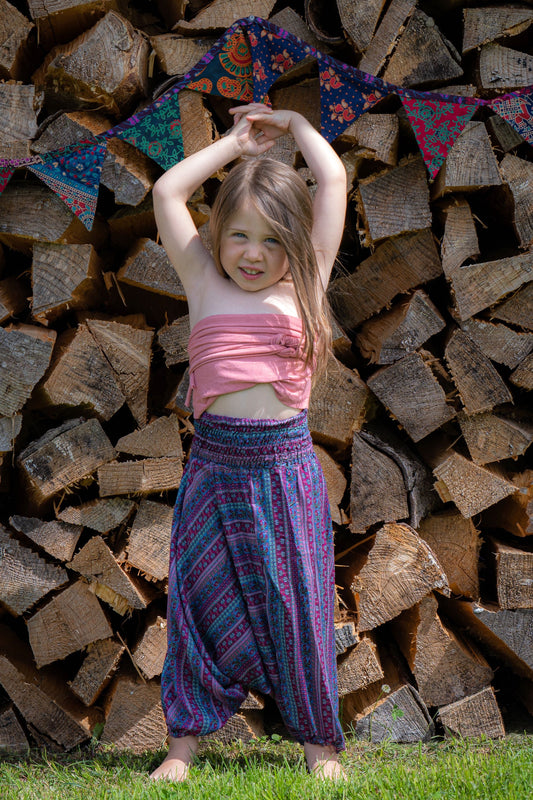 lila, rosa, blau gestreifte Alibaba Hose für Kinder