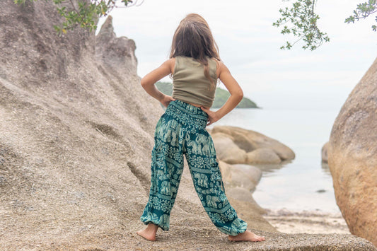 luftige Pluderhose hellblau türkis mit Elefanten für Kinder
