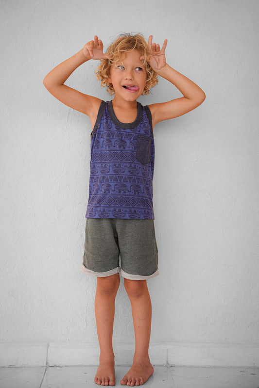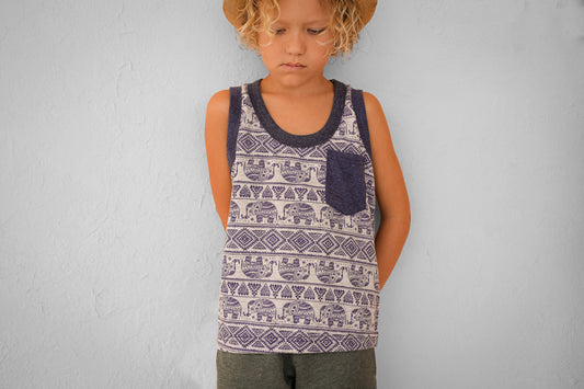 bunt gemustertes Tanktop mit Elefanten für Kinder