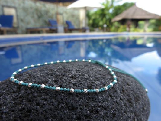Armband mit silbernen Perlen in schwarz oder türkis