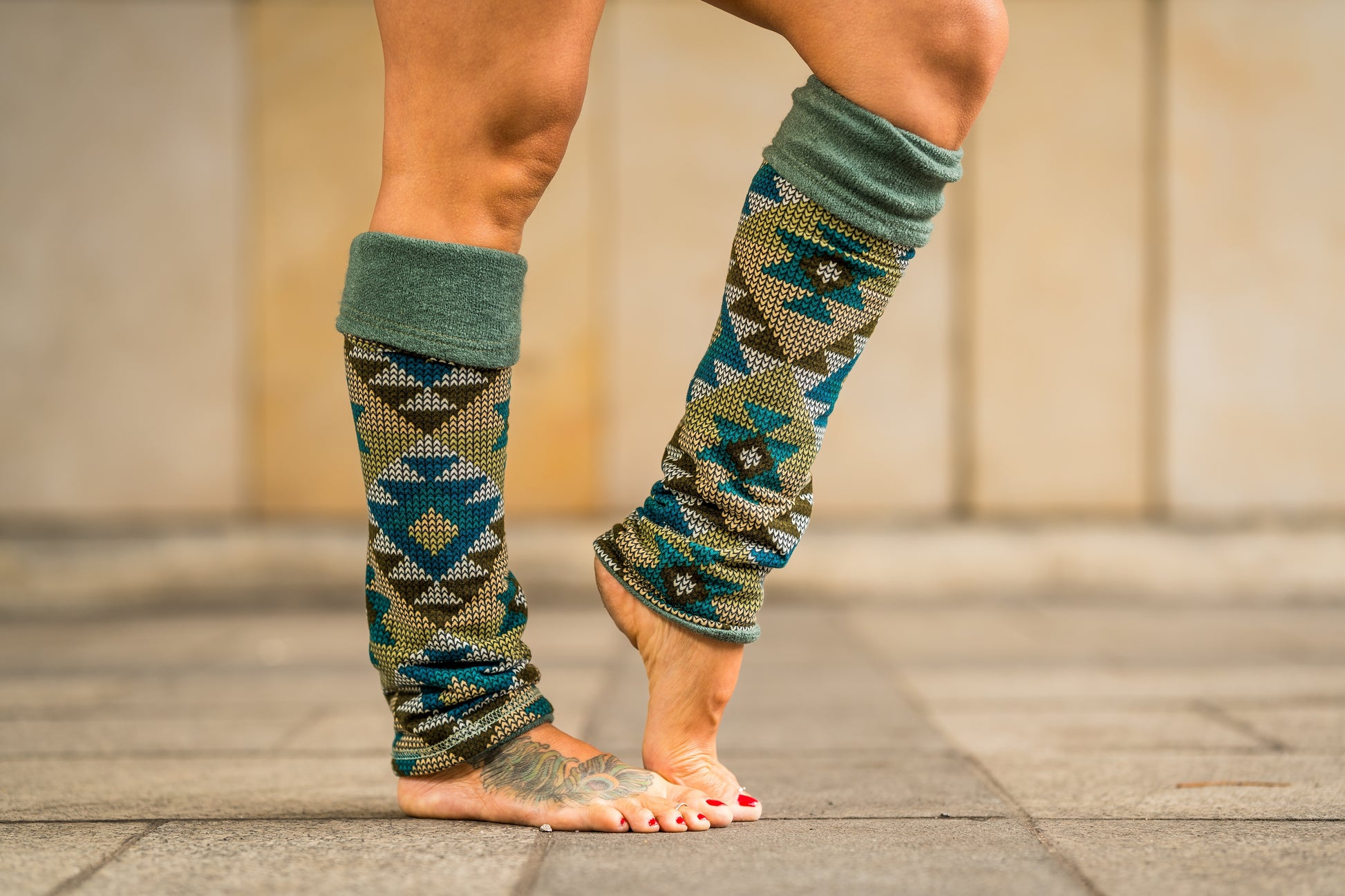 Boho Wendestulpen – Beinstulpen, Yoga & Tanz Stulpen, 4-in-1 Legwarmers Damen in türkis/ gemustert