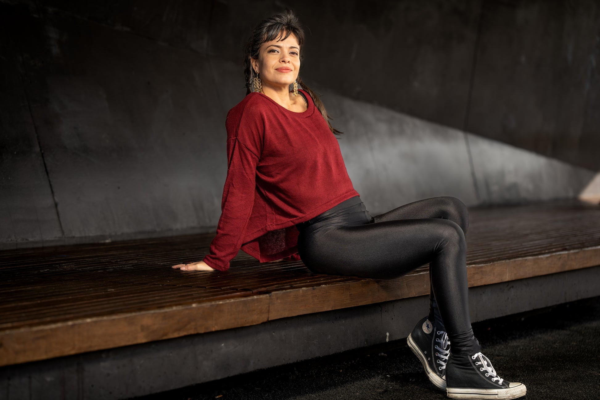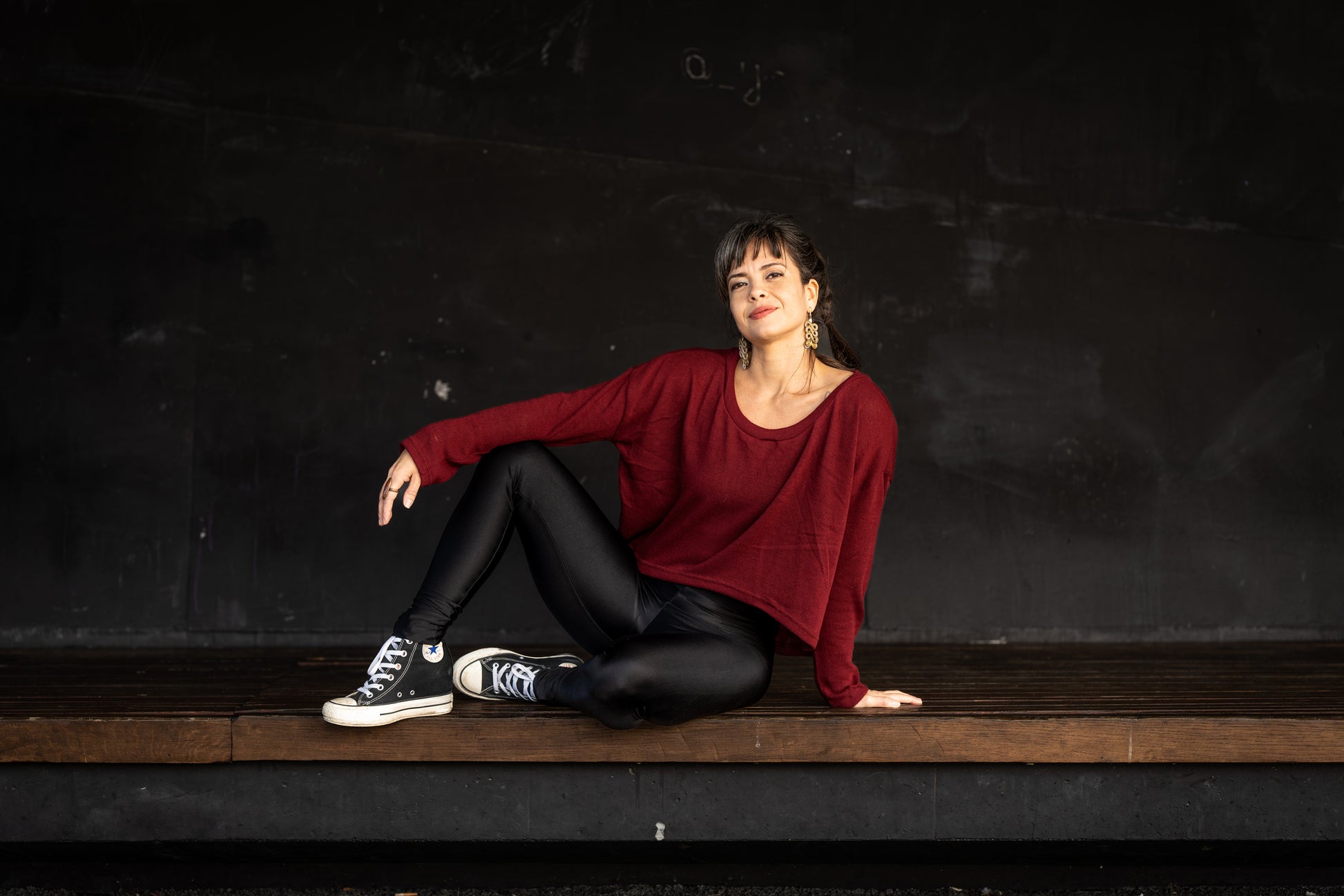 halblanges lockeres Stricktop in rot