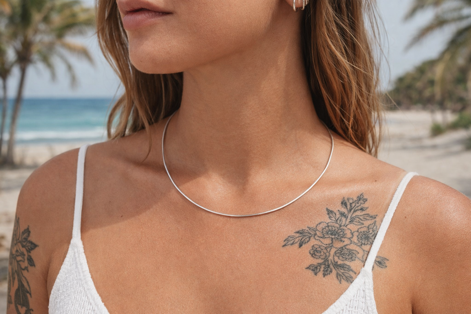 So sitzt der Reif immer optimal am Hals – ob solo getragen für einen minimalistischen Look oder kombiniert mit verschiedenen Anhängern für individuelle Akzente.