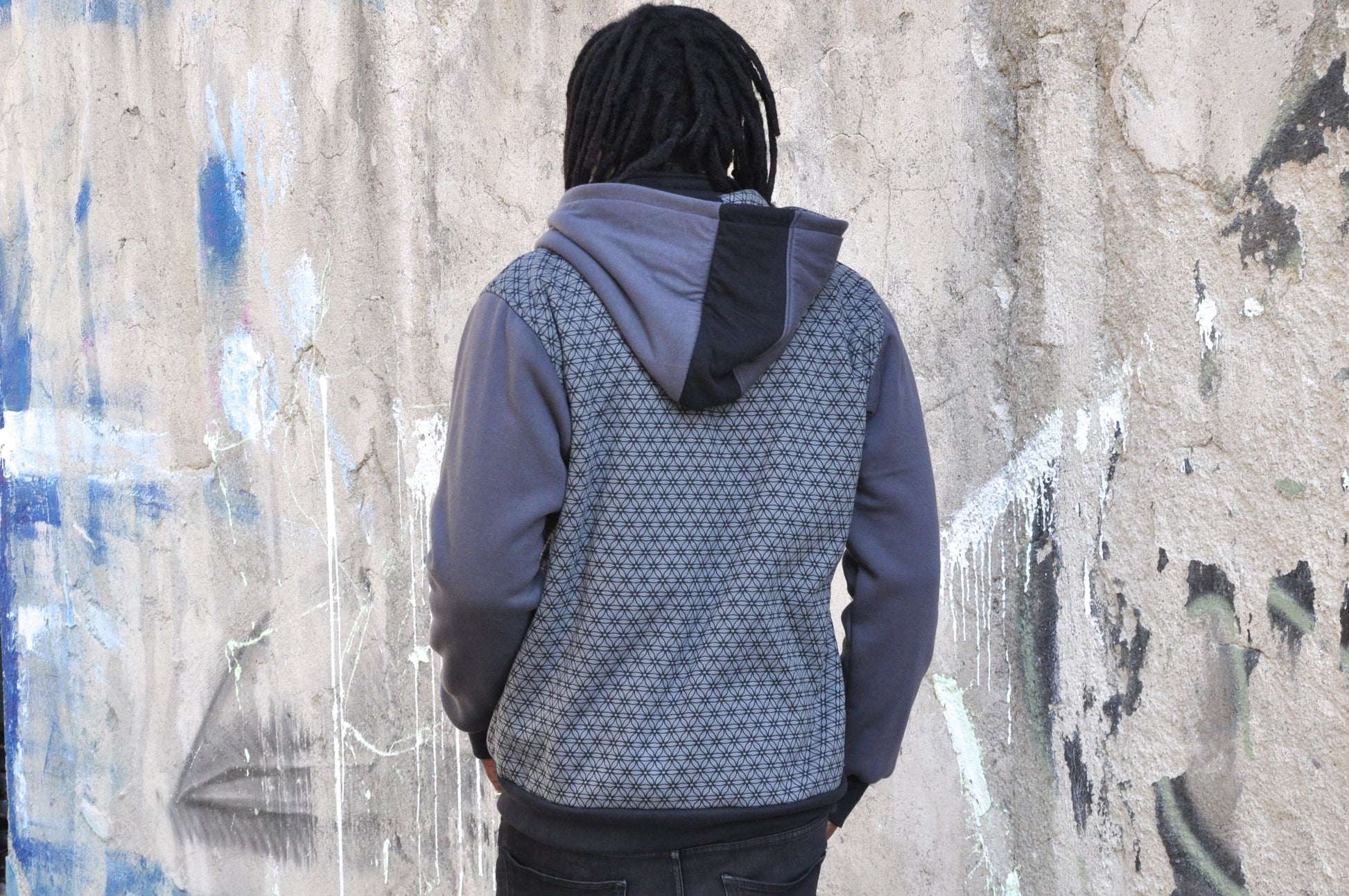 Patchwork Pullover mit Reißverschluss und Kapuze für Männer
