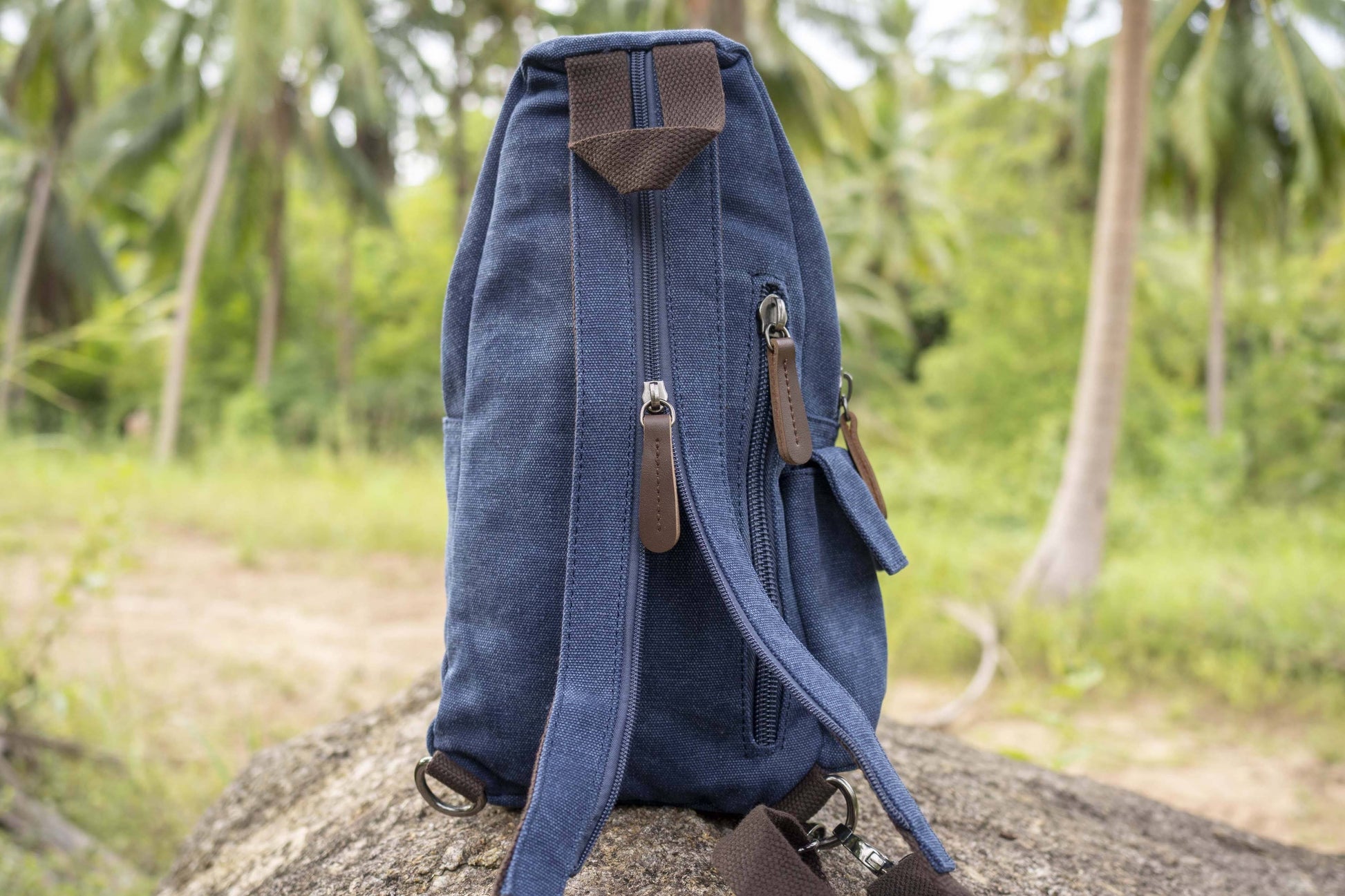 Hauptfach mit braunem Innenfutter (Reißverschlussfach): ein Steckfach und ein Reißverschlussfach