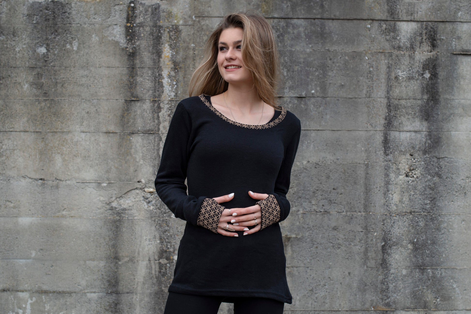 Armbündchen + Saum: 100 % Viskose
