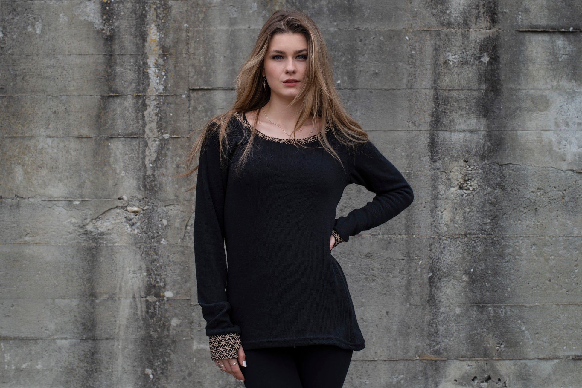 gemütlicher Strickpullover mit gemusterten Ärmelbündchen und Daumenlöchern