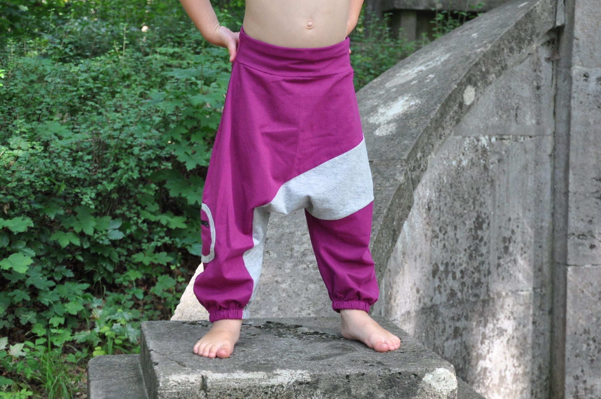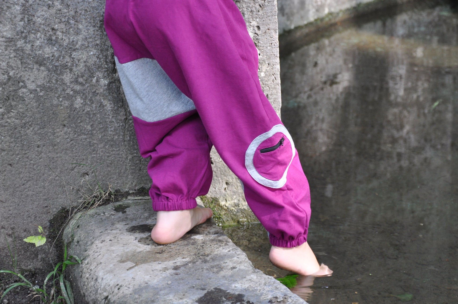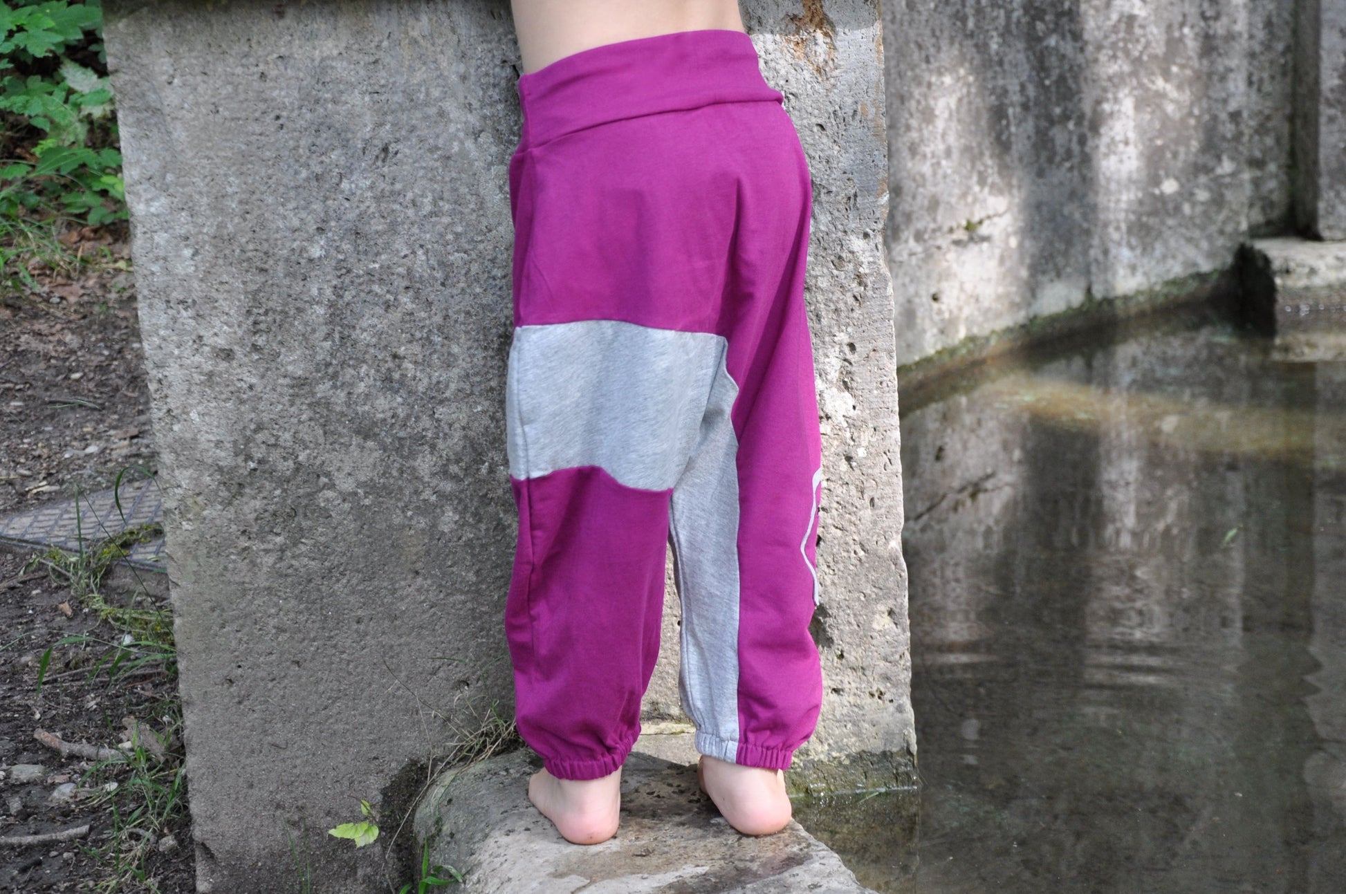 comfortable Alibaba sweat pants for children in pink/gray. Small round pocket with zipper at the end of the leg.