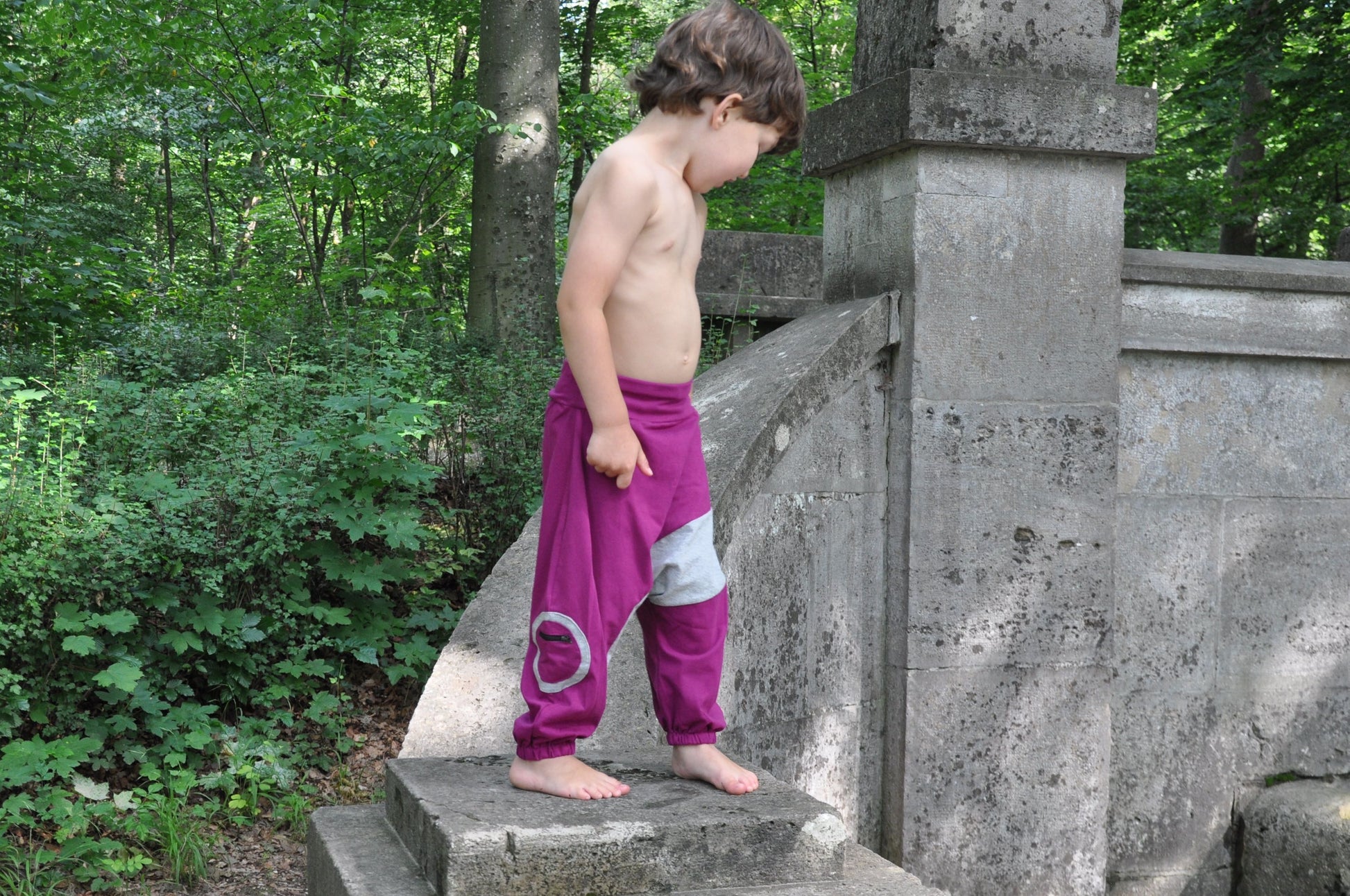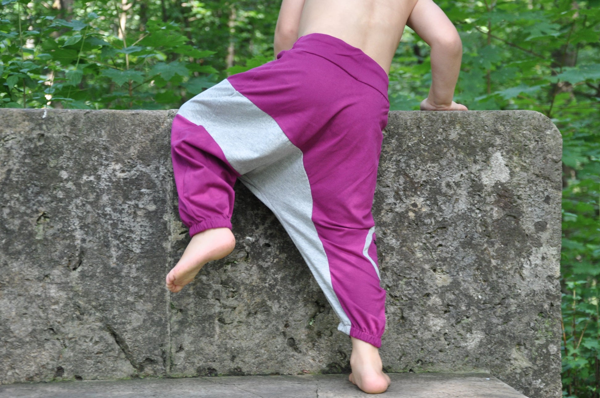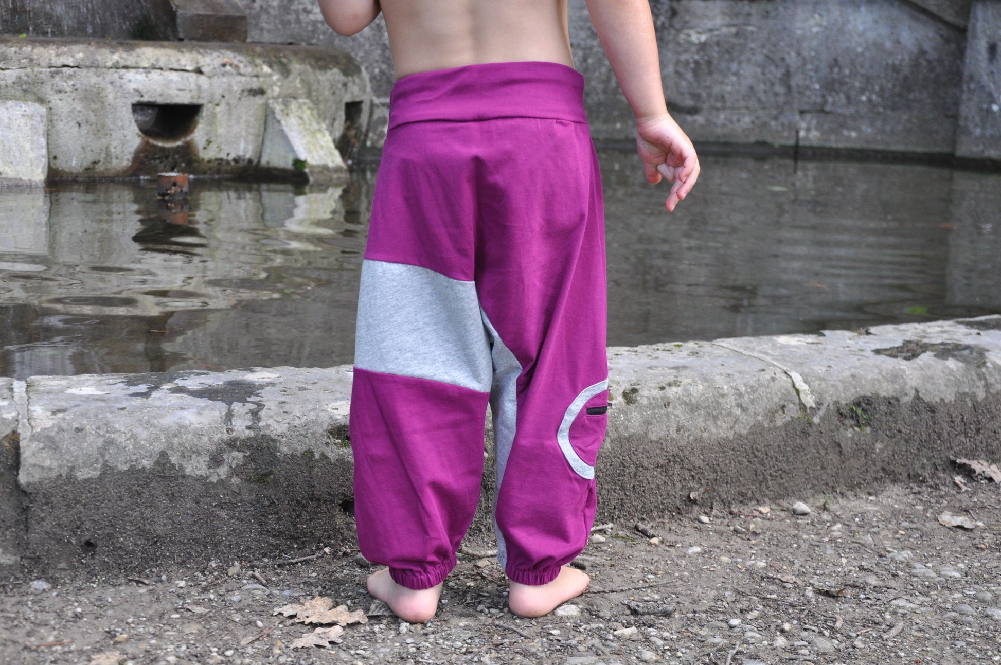 comfortable Alibaba sweat pants for children in pink/gray. Small round pocket with zipper at the end of the leg.
