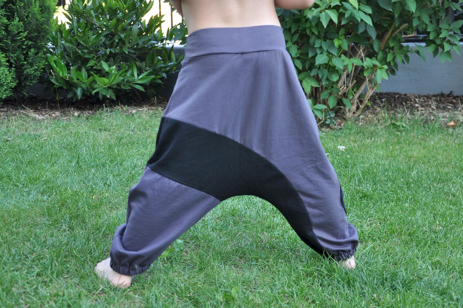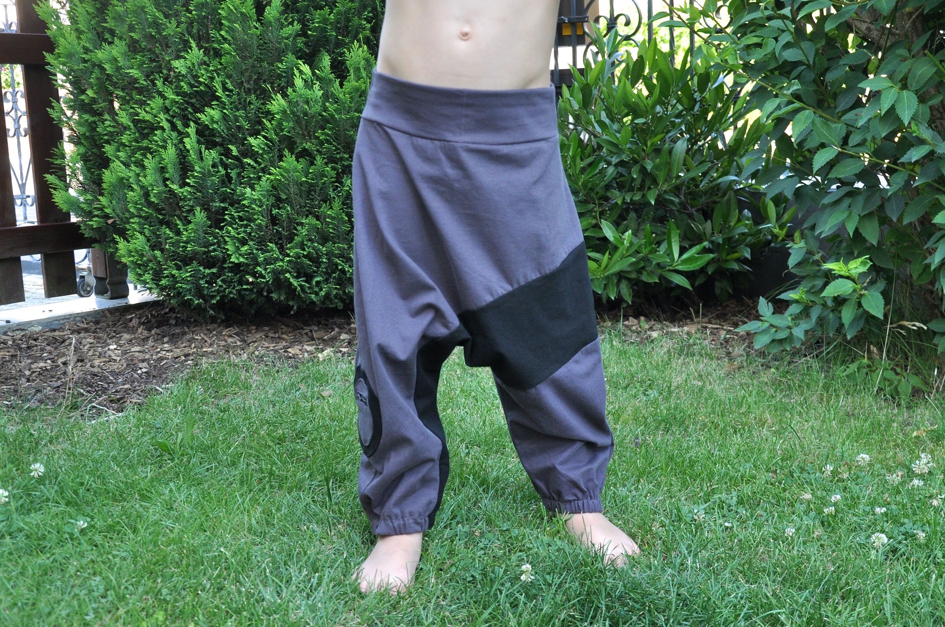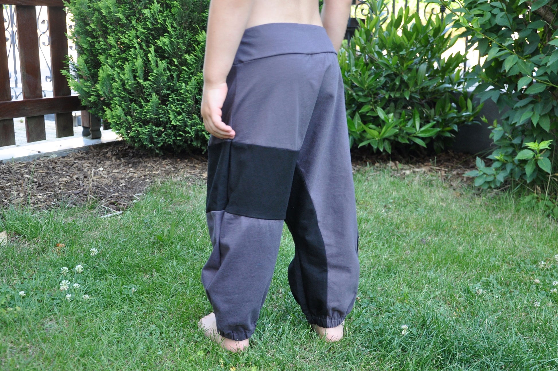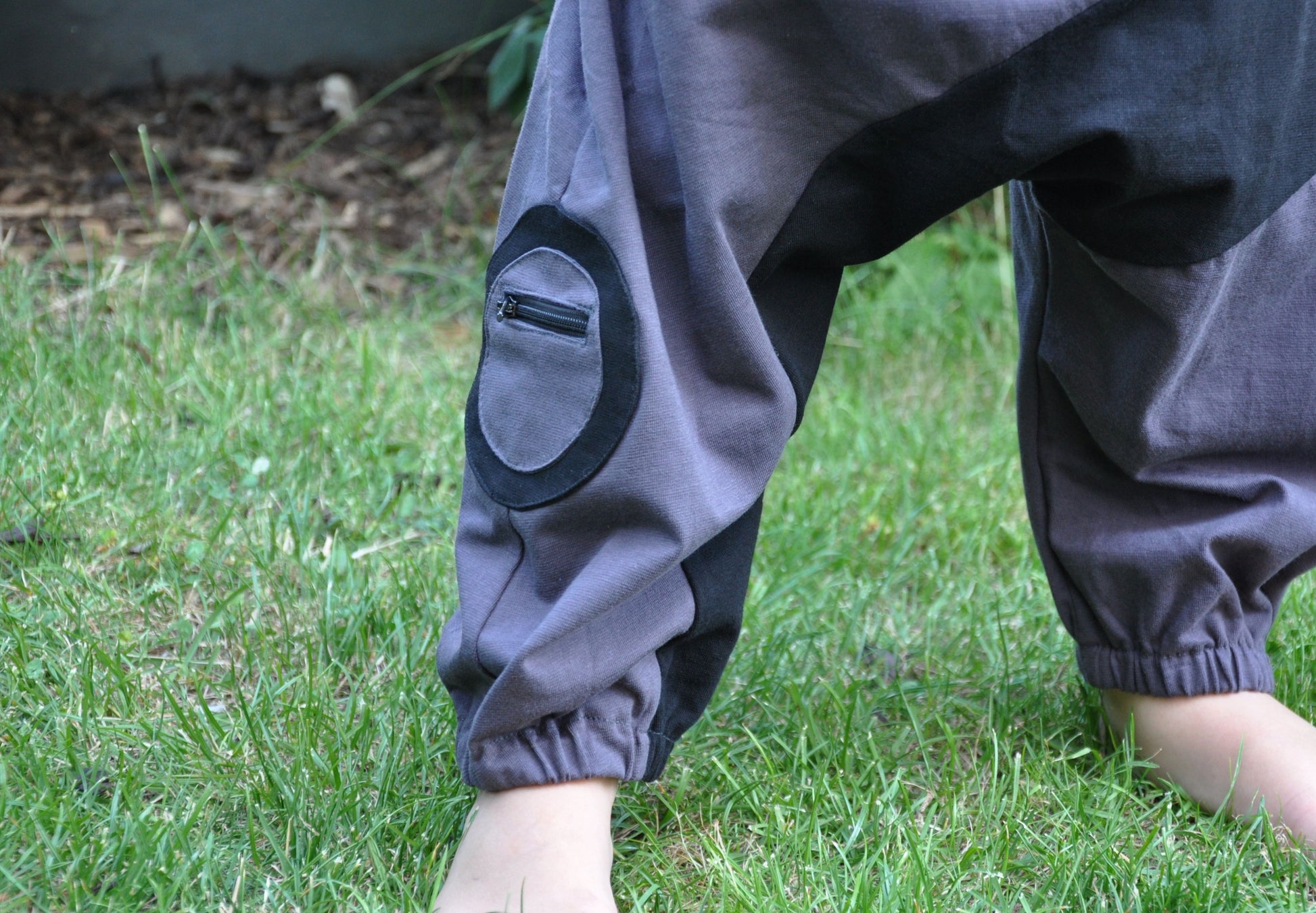 comfortable Alibaba sweat pants for children in gray/black. Small round pocket with zipper at the end of the leg.