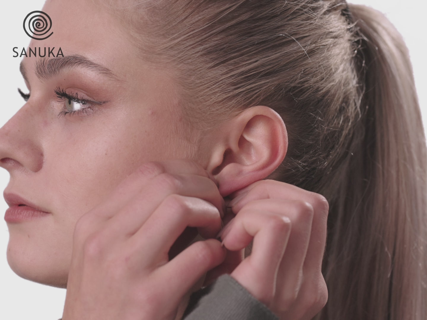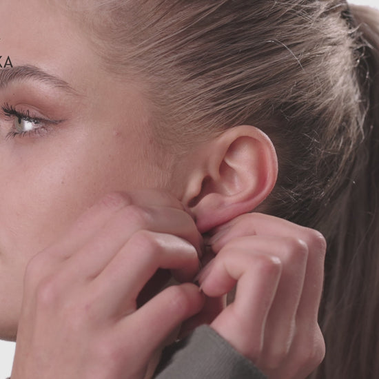 These stud earrings can be worn in various ways. One option is to just wear the small plug without an attachment. Then there is the option of using the attachment behind the ear as well as in front of it. The attachment can also be combined with other existing ear studs.