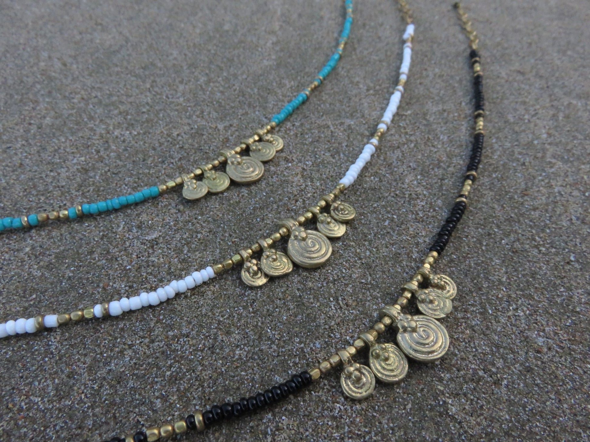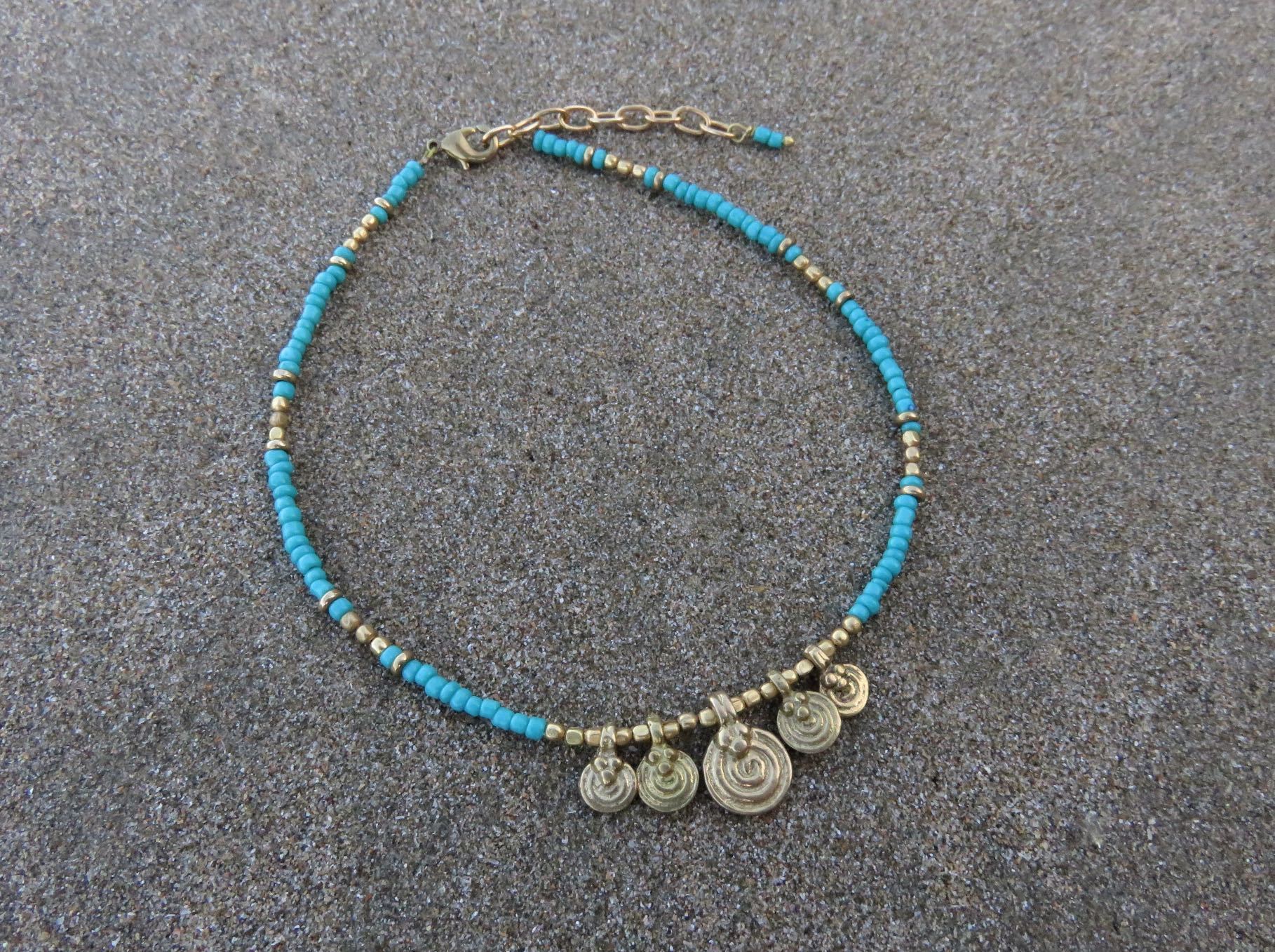 Anklet with small spiral pendants made of brass